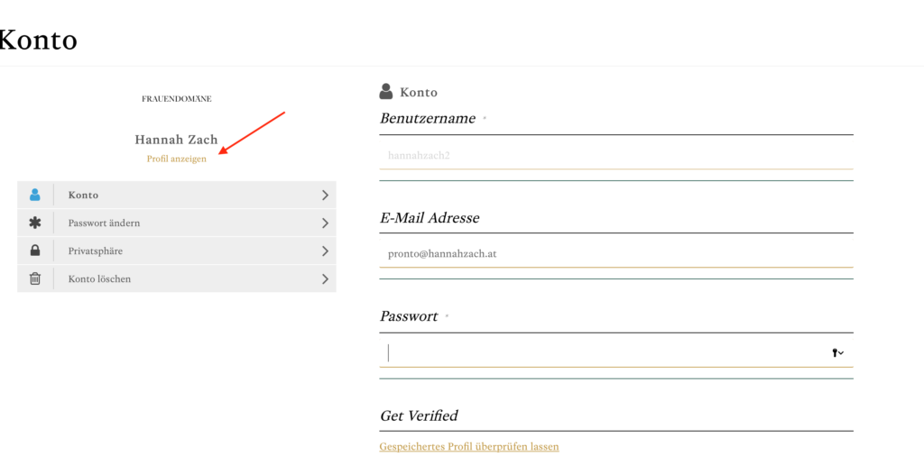 Wir stehen dir unter myprofile@frauendomaene.at zur Verfügung.